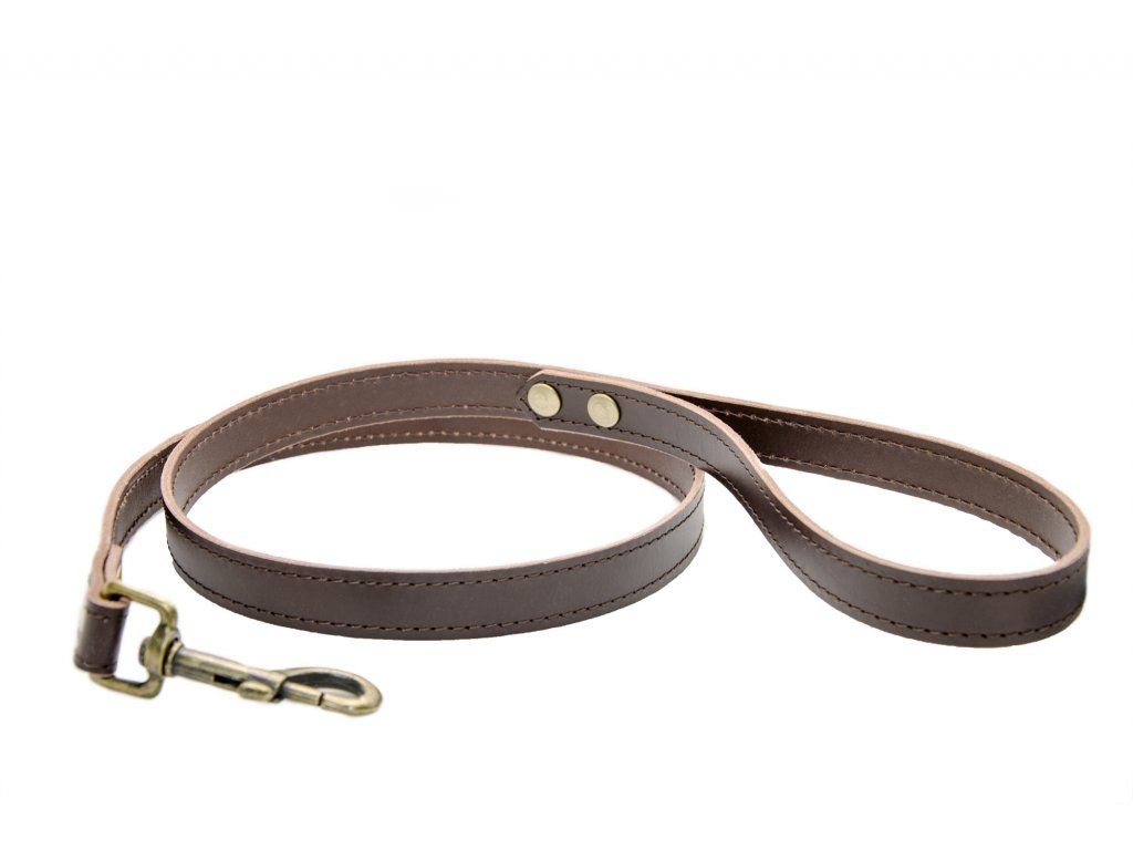 Kožené vodítko TMAVĚ HNĚDÉ 120cm, staromosazné prvky