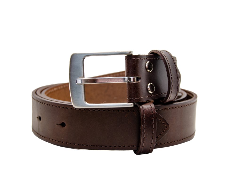 Tmavě hnědý kožený opasek, 40mm šíře